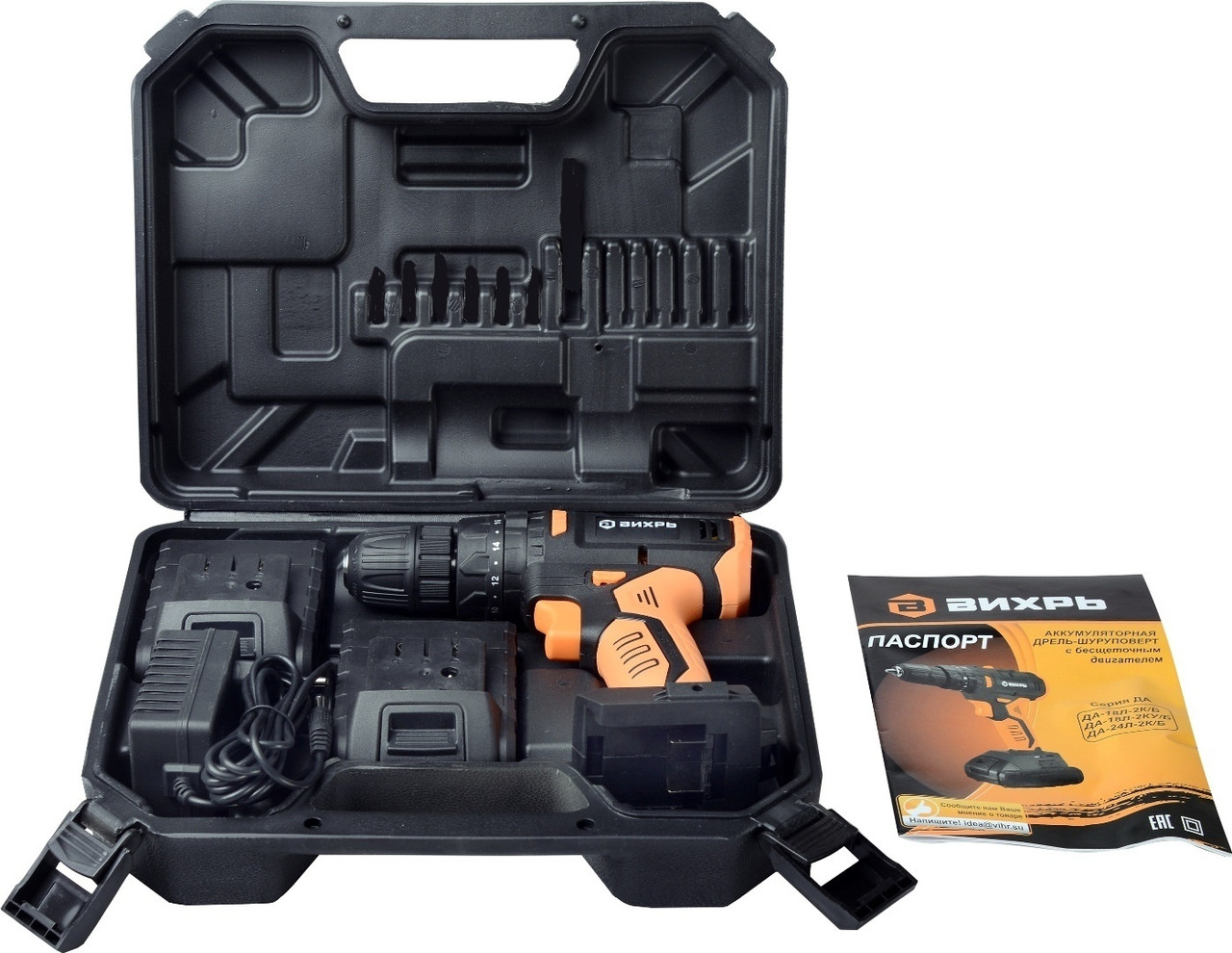Дрель-шуруповерт аккумуляторная ДА-18Л-2КУ/Б (2,0 А/ч) (бесщеточный двигатель, ударный) Вихрь